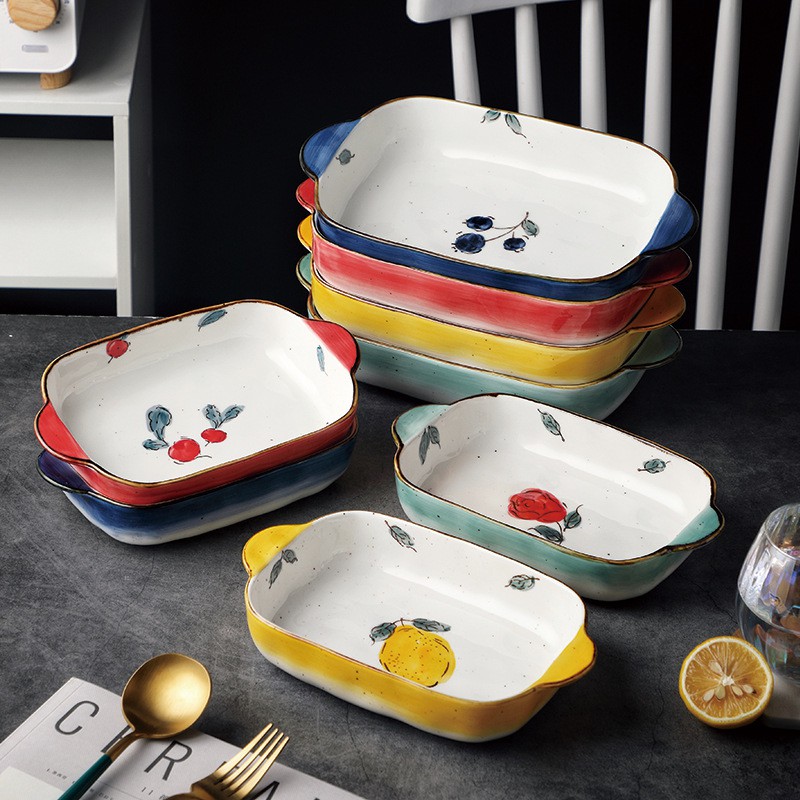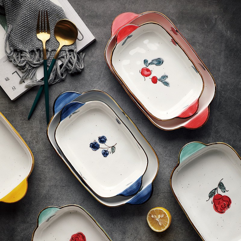 Nhà cửa & Đời sống > Bộ đồ bàn ăn > Dĩa || Bát sứ, thố nướng chữ nhật có quai cầm họa tiết hoa quả cực xinh- 2 dung tíchCòn hàng