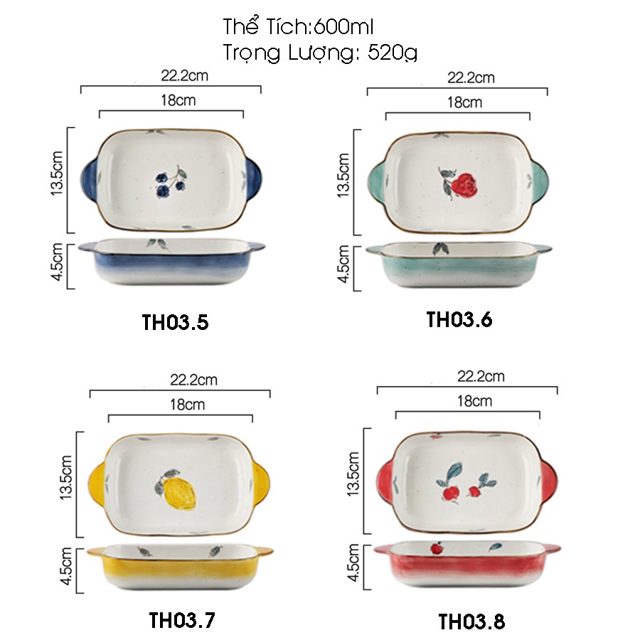 __ THÔNG TIN SẢN PHẨM:+ Tên sản phẩm: Bát sứ, thố nướng chữ nhật có quai cầm họa tiết hoa quả cực xinh- 2 dung tích
