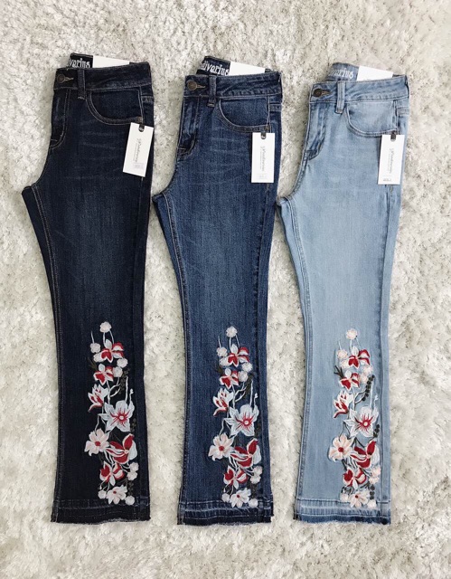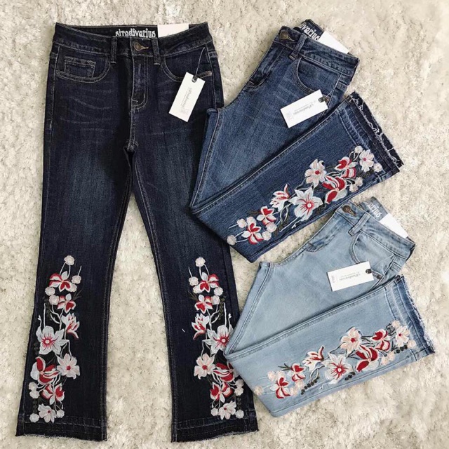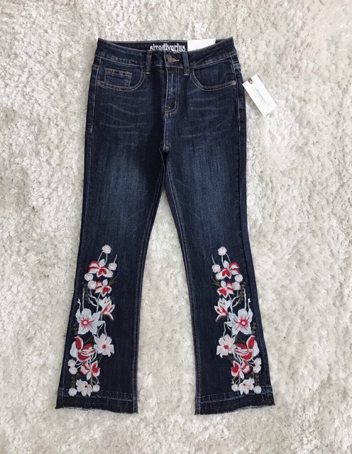 quần jeans óng bát thiêu hoa dài mắc cá chân chất liệu co hỉan nhẹ nhản khong phai màu kiểu dáng cực đẹp fom cực chuẩn luôn nha khách yêu !Giá LUNC