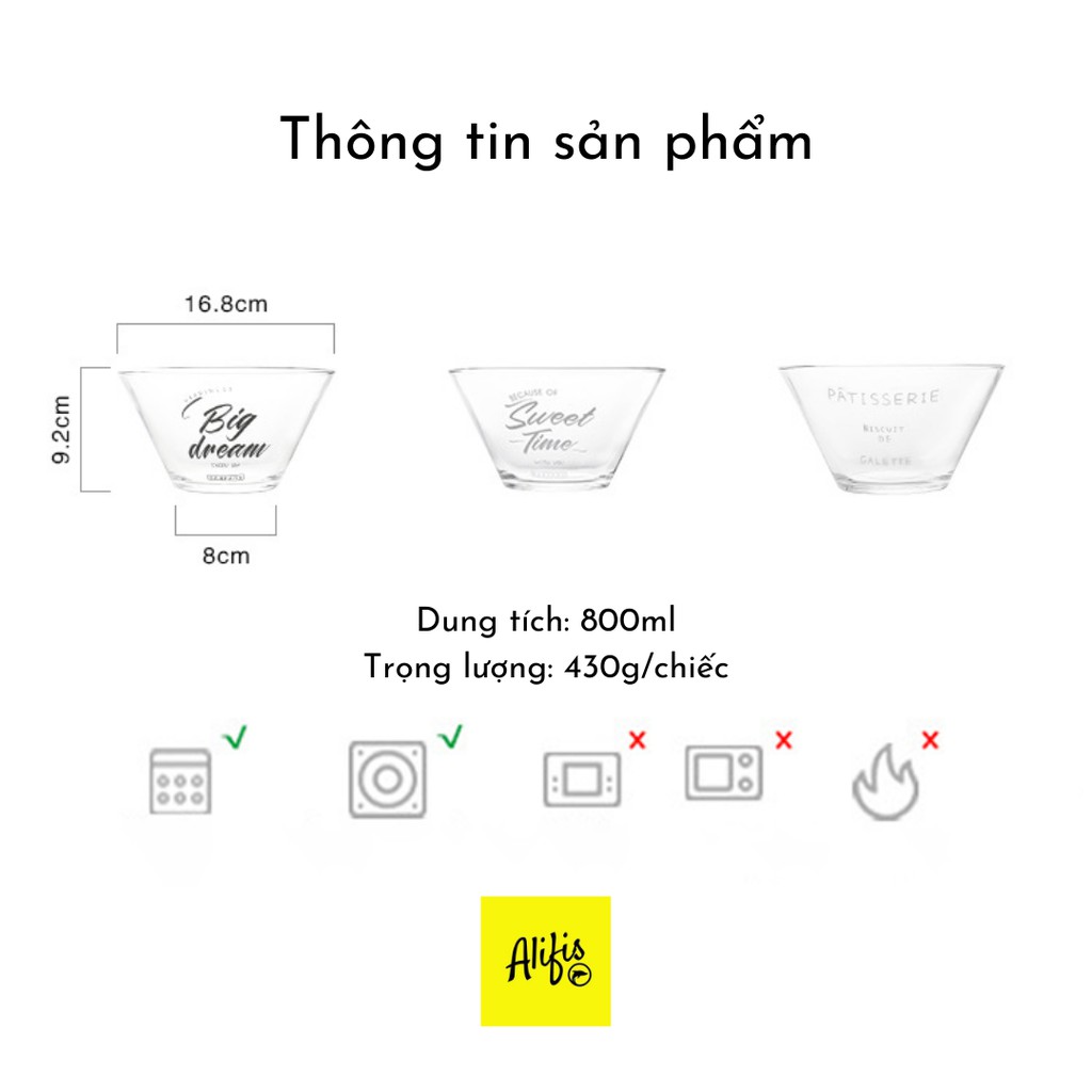 Giới thiệu Bát thủy tinh, tô thuỷ tinh salad hình nón phong cách Bắc Âu 800ml Alifis
