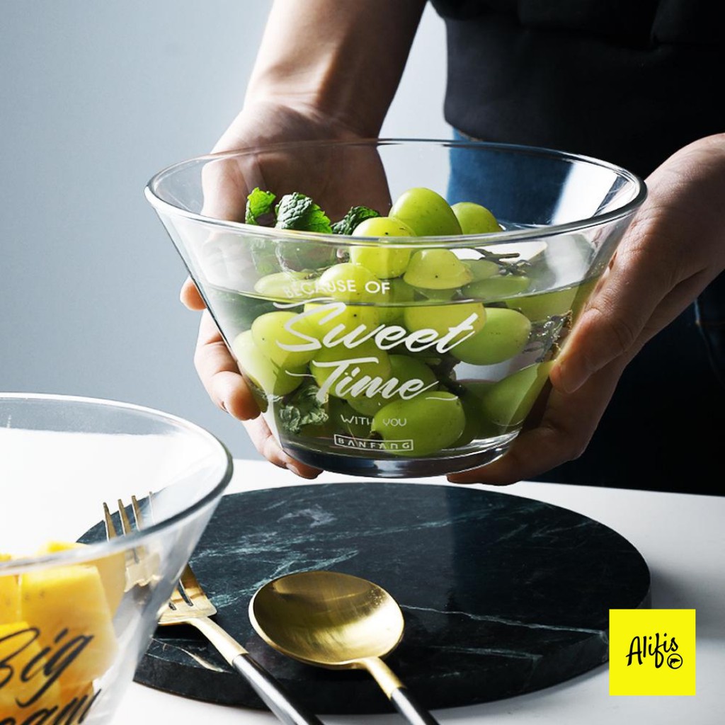 - Thiết kế hiện đại sang trọng theo phong cách Châu Âu, bát thủy tinh thích hợp cho bạn bày các món salad, hoa quả, rau củ…