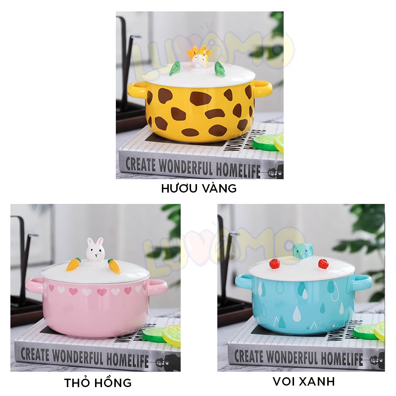 Bát tô sứ có nắp làm giá để điện thoại úp mì đựng cơm canh 800ml luvamo BS09