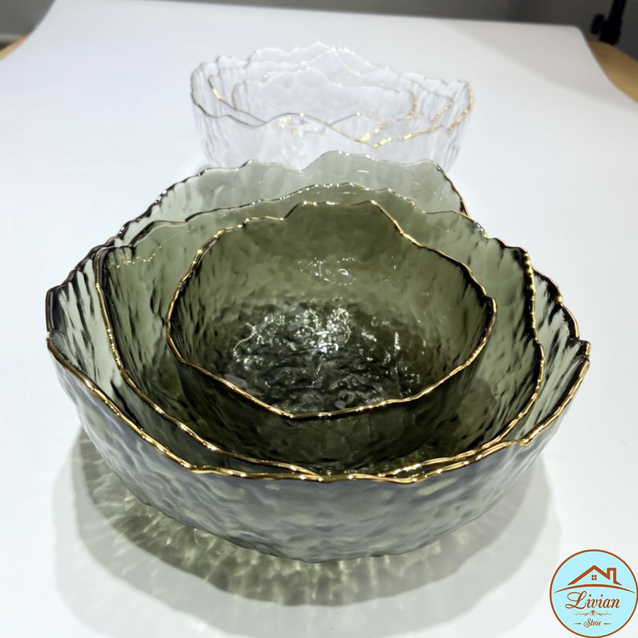 Nhà cửa & Đời sống > Bộ đồ bàn ăn > Tô || Bát tô thủy tinh ánh pha lê trong suốt viền vàng cao cấpCòn hàng