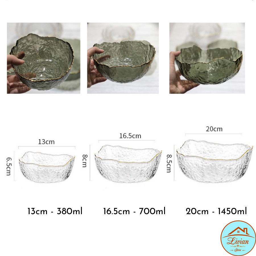 __ THÔNG TIN SẢN PHẨM:+ Sản phẩm: Bát tô thủy tinh ánh pha lê trong suốt viền vàng 3 dung tích