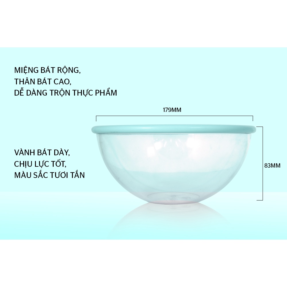 Bát có vành nhựa dày, chịu lực tốt, màu sắc tươi tắn, giúp căn bếp của bạn sinh động hơn.