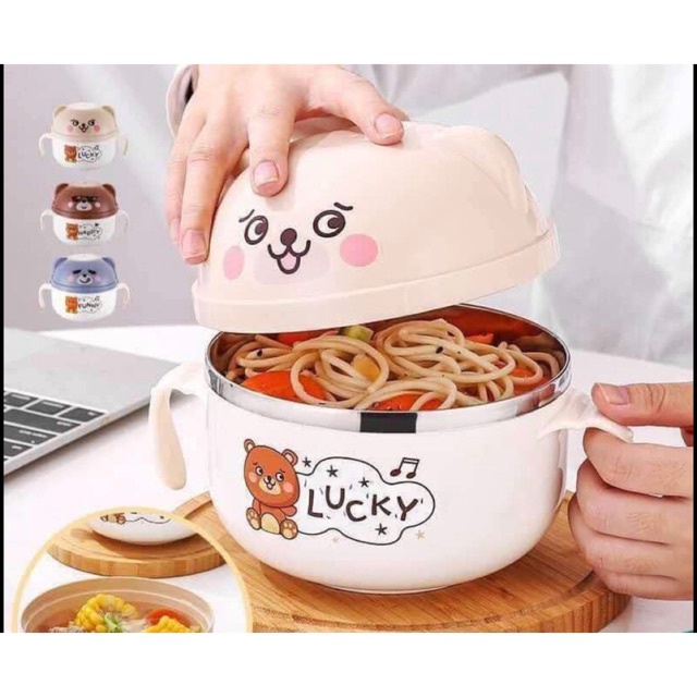 Nhà cửa & Đời sống > Bộ đồ bàn ăn > Tô || Bát úp mì có nắp hình gấu Kèm Thìa - Hai Lớp inox chống nóng Cao Cấp, ca pha mỳ ruột inoxCòn hàng