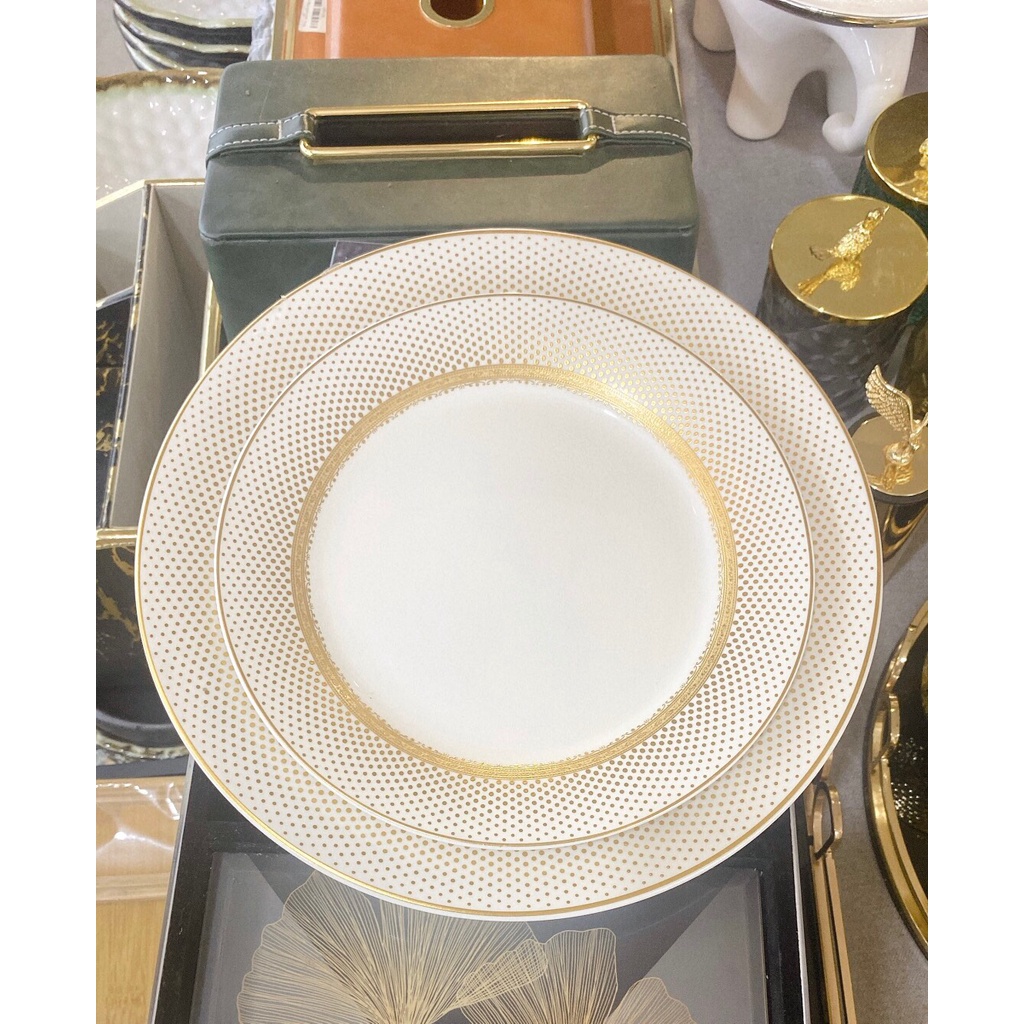 Nhà cửa & Đời sống > Bộ đồ bàn ăn > Dĩa || Bộ bát và đĩa phong cách Bắc Âu sang trọng, viền vàng,ăn tiệc cao cấp, để salad, ăn chính,, bát soupCòn hàng
