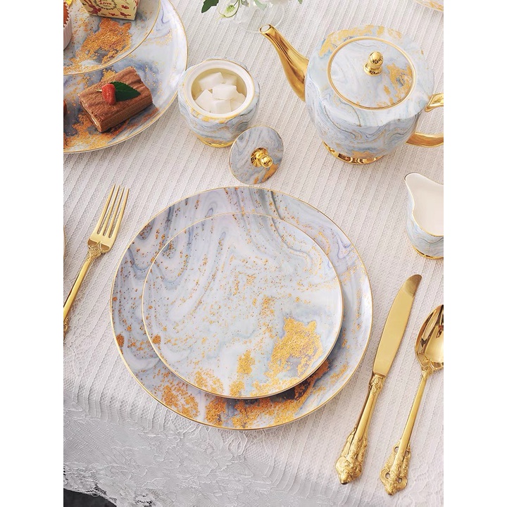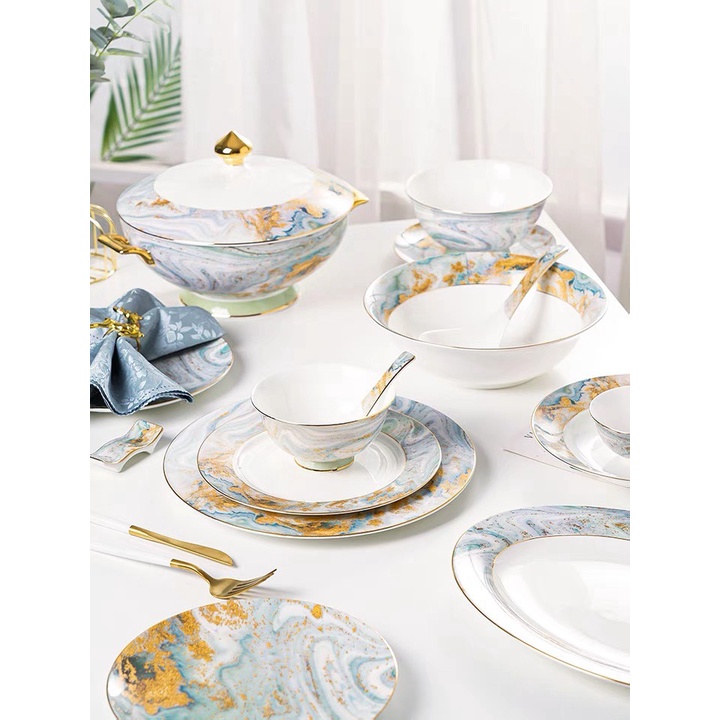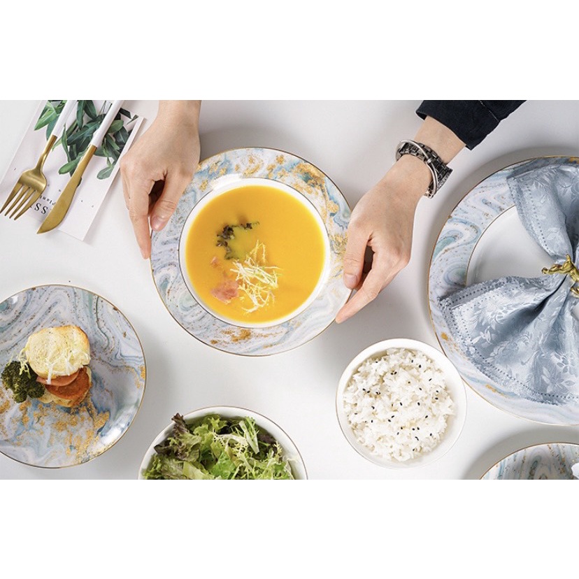 Nhà cửa & Đời sống > Bộ đồ bàn ăn > Dĩa || Bộ bát và đĩa phong cách Bắc Âu sang trọng, viền vàng,ăn tiệc cao cấp, để salad, ăn chínhCòn hàng