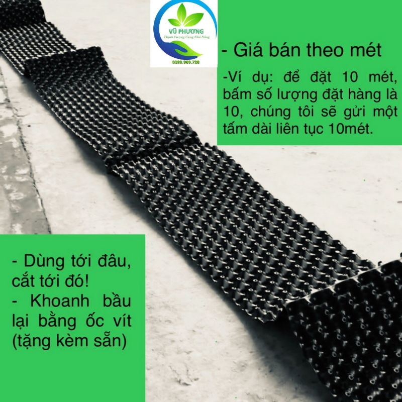 - Chiều dài: tùy theo nhu cầu sử dụng. Ví dụ: cây cần 5 mét để vây thành bầu trồng thì Quý khách chọn mua 5 mét, chúng tôi sẽ đo đủ 5 mét liền. (không phải rời từng miếng nối lại)