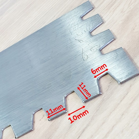 Mặt bay hình chữ nhật: 90mm x 160mm. Độ dày: 1,1mmRãnh răng cưa hình thang: 11mm x 10mm x 15mm.