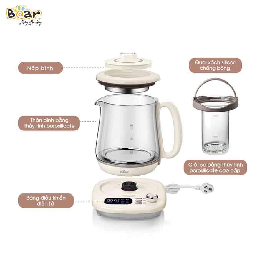 Nhà cửa & Đời sống > Dụng cụ nhà bếp > Dụng cụ pha trà, cà phê || [Bear Chính Hãng] Máy Pha Trà Bear SUBE011 trắng ngà, chất liệu thủy tinh cao cấp chịu nhiệt cao với nhiều chế độCòn hàng