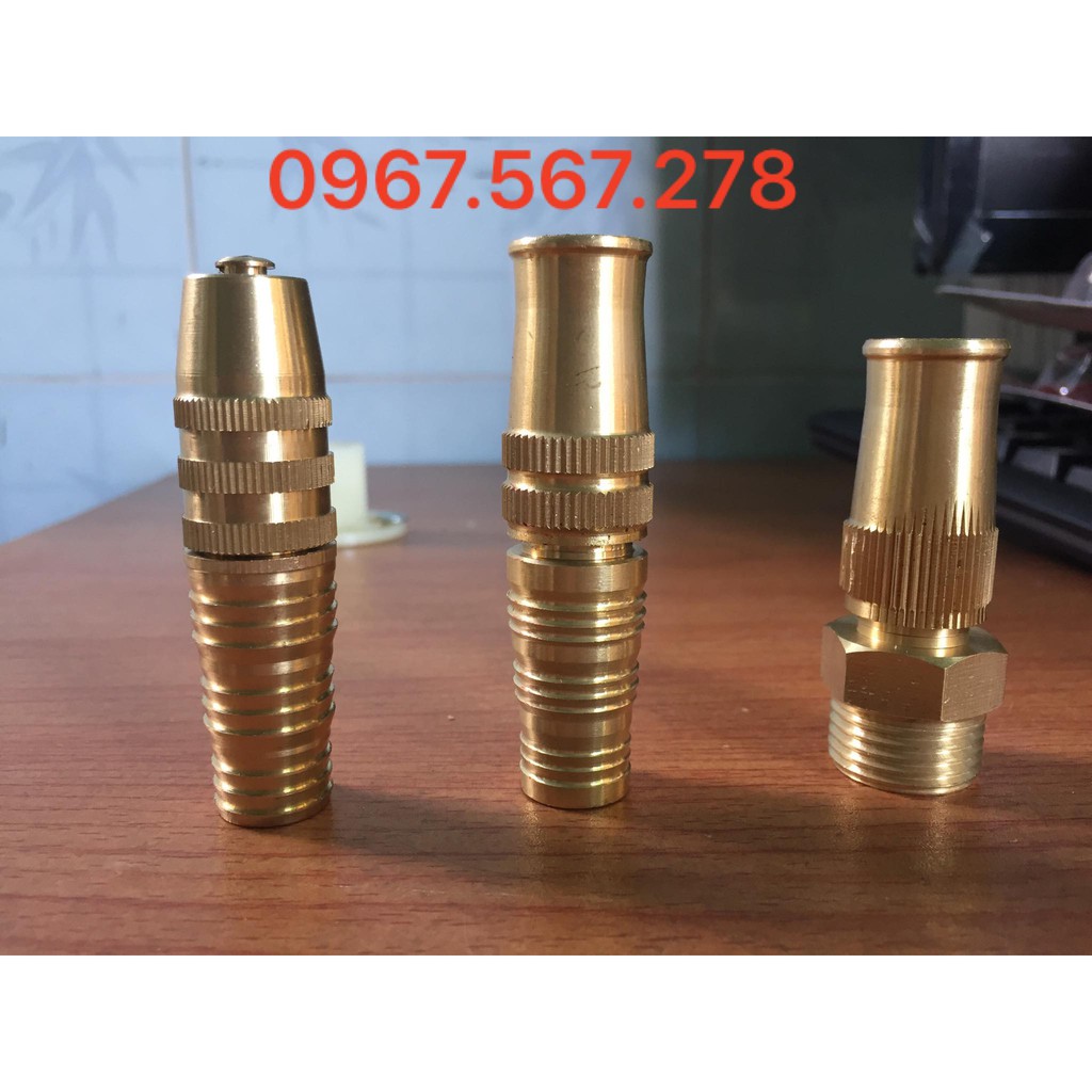 Đầu vòi rửa xe,tưới cây bằng đồng điều chỉnh tia nước, tạo áp lực nướcĐầu vòi có thể nối nhanh với các ống mềm,có thể vừa các cỡ đầu ống phi 12,14,16,18