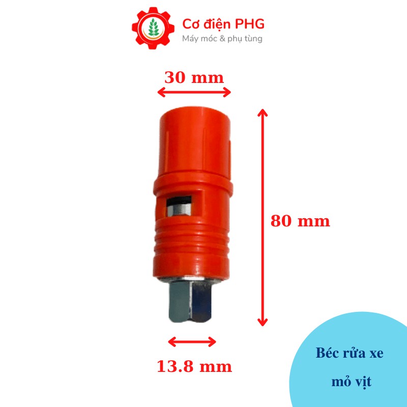 ** Đầu nối răng trong 13.8 mm vừa với dây rửa xe; chỉnh tia thẳng ( mở ra ) và tia xòe ( vặn vô ).