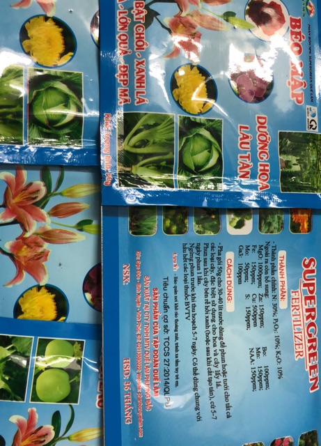 - Pha gói 50g cho 30 – 40 lít nước dùng để phun hoặc tưới cho tất cả các loại cây, đặc biệt sử dụng cho hoa và cây lấy lá.