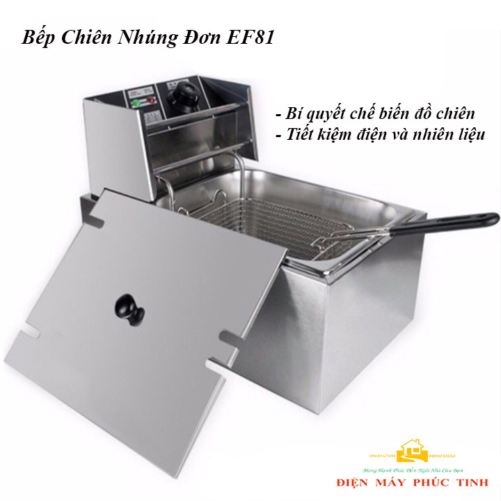 Bếp Chiên Nhúng Điện đơn dầu bằng điện là loại bếp chiên được sử dụng rộng rãi tại các cửa hàng bán đồ ăn nhanh, khoai tây lốc xoắn, các nhà hàng….
