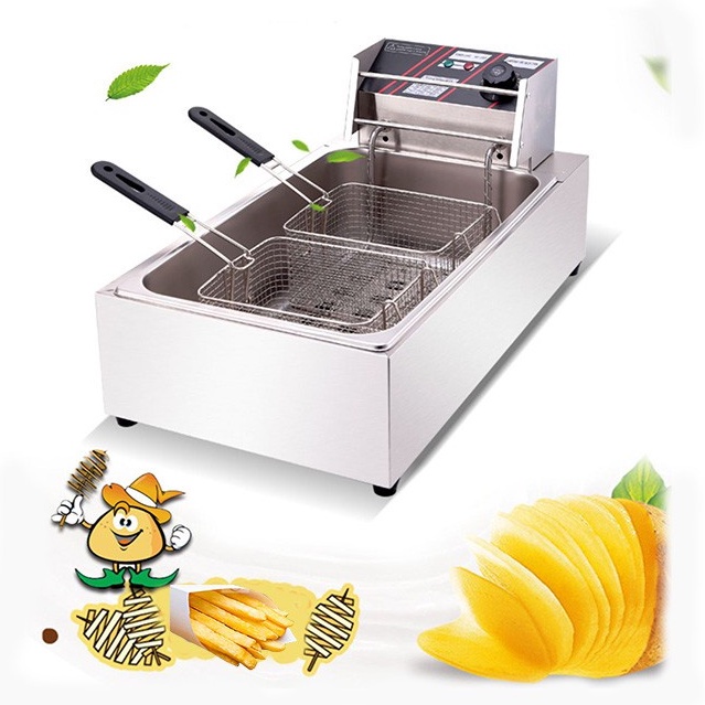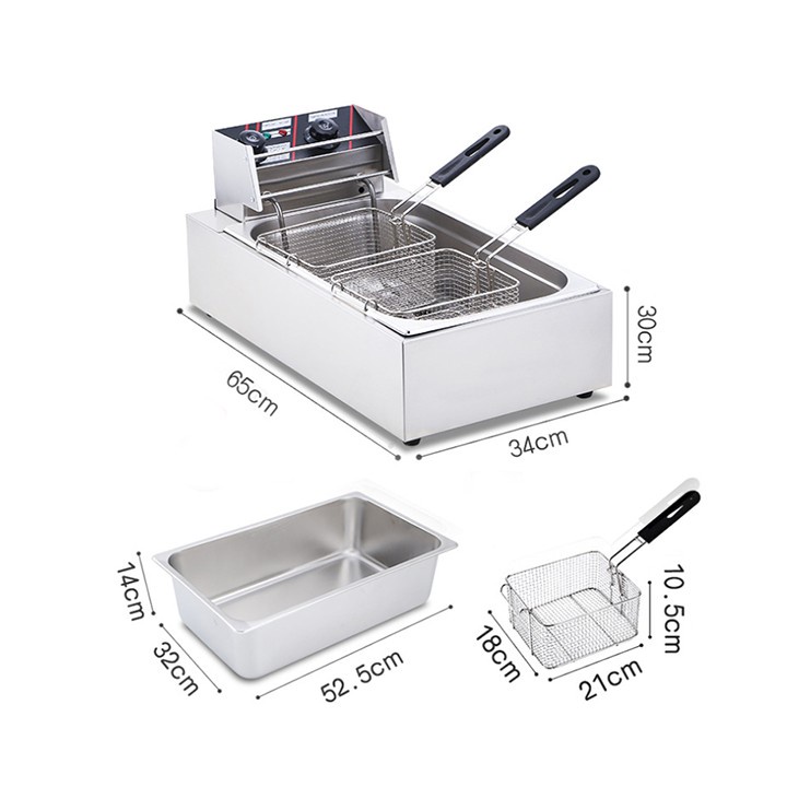 – Bếp chiên nhúng điện đôi 12 lít: bếp chiên khoai tây, chiên gà, đùi gà, cánh gà, xúc xích, thịt bò... Bếp chiên đa năng thiết kế bằng inox không rỉ, có thể tháo rời dễ dàng thuận lợi cho vệ sinh.