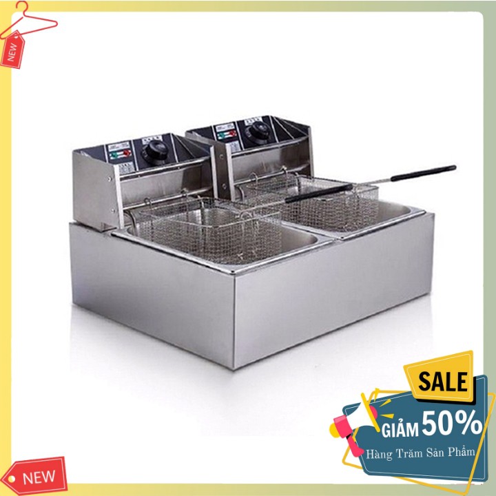 – Bếp chiên nhúng điện đôi 2 giỏ 6X2 lít: bếp chiên khoai tây, chiên gà, đùi gà, cánh gà, xúc xích, thịt bò... Bếp chiên đa năng thiết kế bằng inox không rỉ, có thể tháo rời dễ dàng thuận lợi cho vệ sinh.