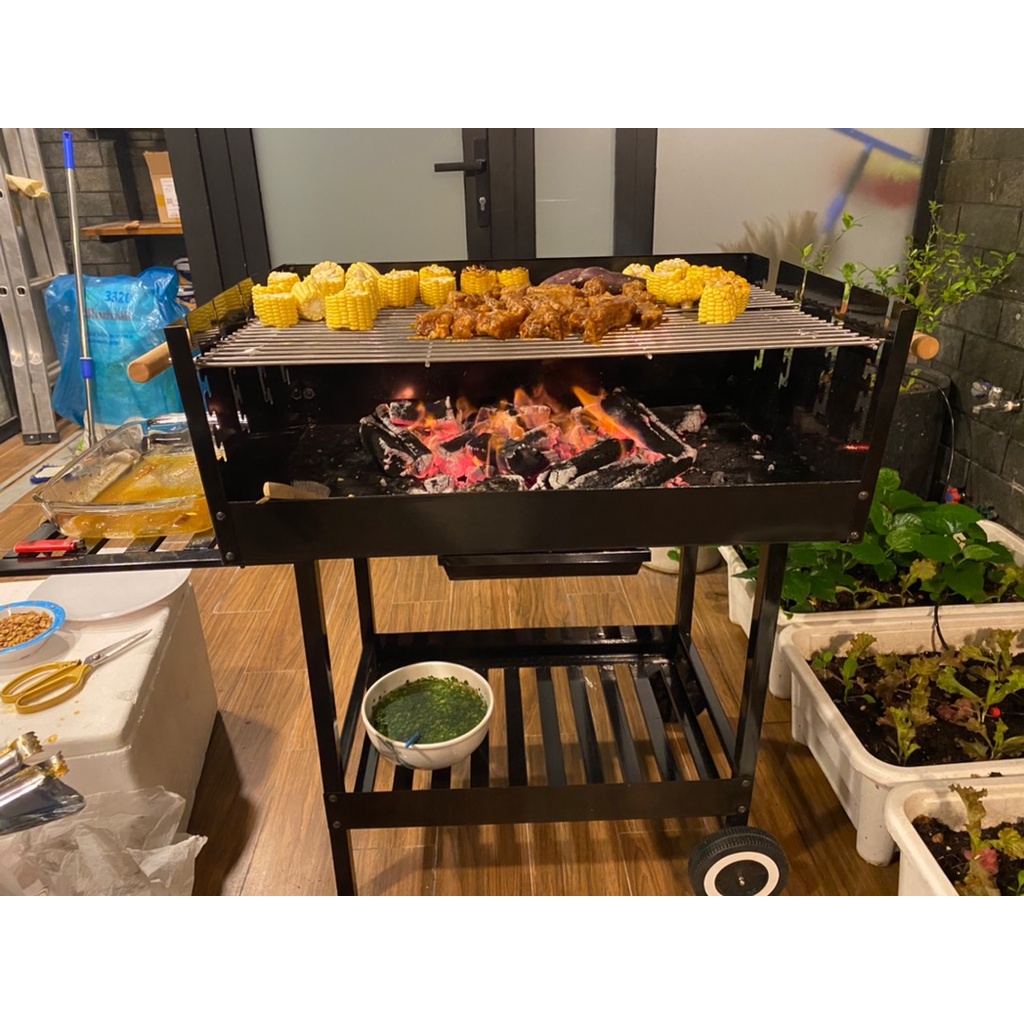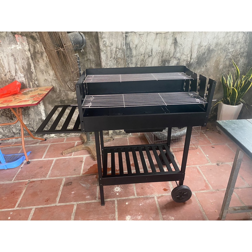 Bếp nướng này có 1 kệ phía dưới to và 1 kệ bên trên nhỏ rất thuận thiện cho việc để thực phẩm sống và thực phẩm chín.