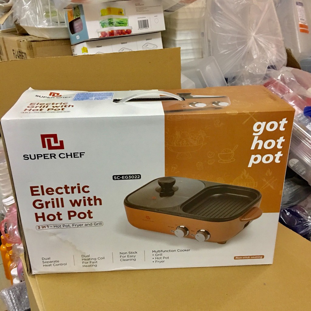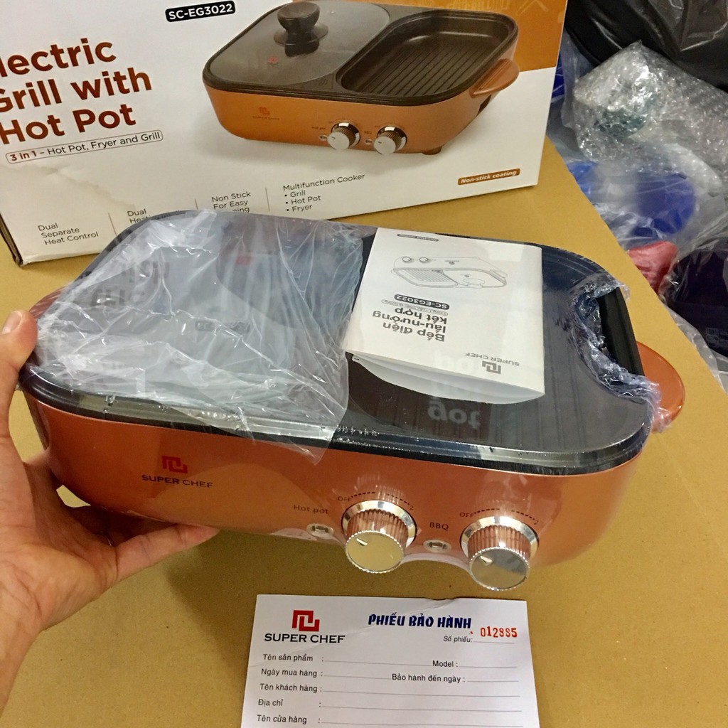 Bếp điện lẩu, nướng chiên kết hợp chống dính 2 chức năng Chính hãng cao cấp EG3022 Super Chef