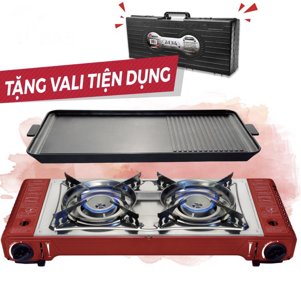 Bếp gas đôi du lịch Maxsun Hàn Quốc (Tặng kèm vỉ nướng + hộp đựng có quai xách)