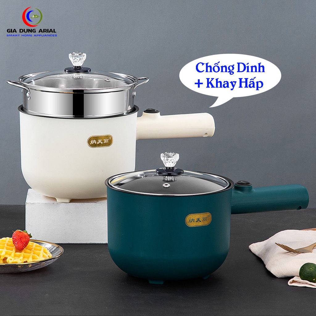 - Đáy nồi điện mini phủ lớp chống chính cao cấp hấp thụ nhiệt siêu nhanh giúp dễ nấu ăn và dễ dàng vệ sinh.