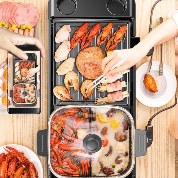 Nhà cửa & Đời sống > Dụng cụ nhà bếp > Lò nướng & phụ kiện || Bếp lẩu kiêm nướng 2 trong 1 cao cấp chống dính, phủ Teflon, khay tháo rời tiện dụng, 2200W, BBQ hot pot grillCòn hàng