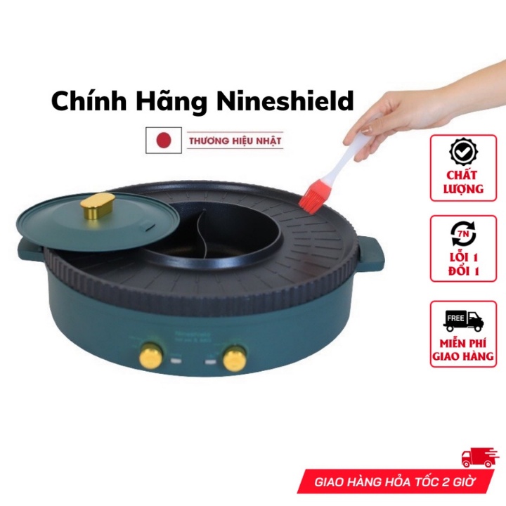 Bếp lẩu nướng 2 in 1 - Nồi lấu nướng đa năng NINESHIELD không khói nhiều chế độ, chống dính, 2 mâm nhiệt công suất 1200W