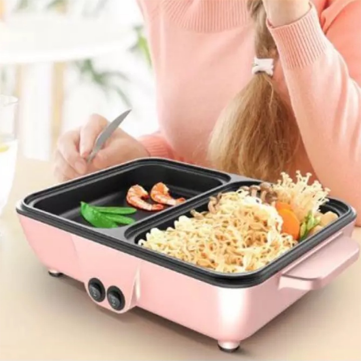 Nồi lẩu nướng điện mini 2 ngăn Chống Dính Đa Chức Năng mẫu mới nhất hiện nay
