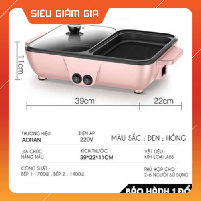 Bếp lẩu nướng 2 ngăn Hàn Quốc, Nồi lẩu nướng 2 in 1 siêu chống dính đa năng bảo hành lỗi 1 đổi 1