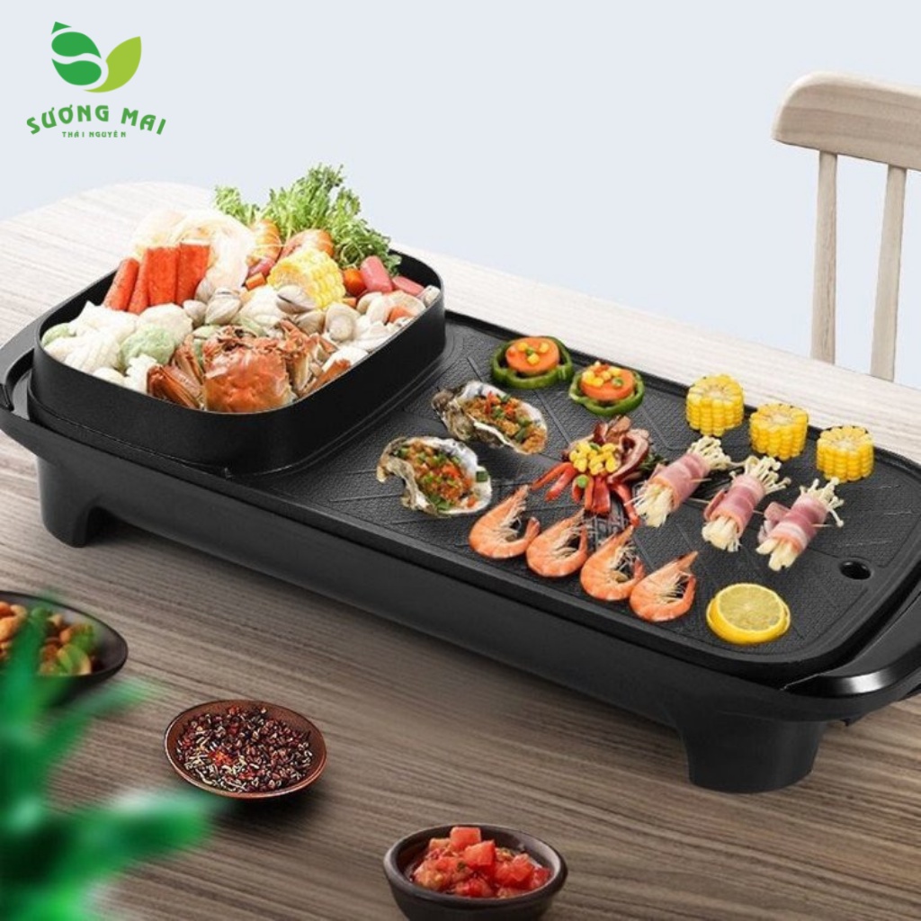 Bếp Lẩu Nướng 2 Trong 1 SƯƠNG MAI 1 Nguồn Chung 1360W Chất Liệu Chống Dính Dung Tích 6L Nấu Cho 2-4 Người SM00253