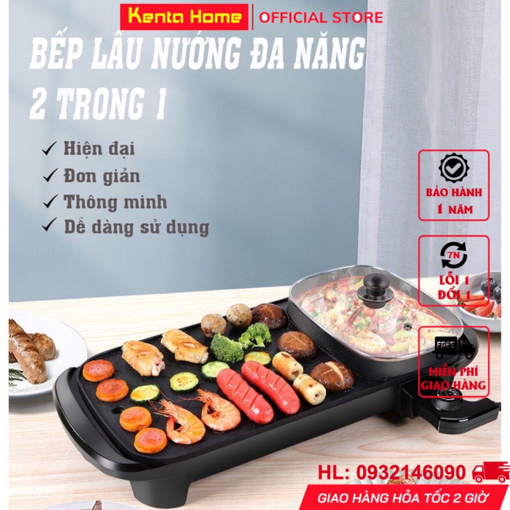 Bếp lẩu nướng 2in1 đa năng tiện lợi với 1 nguồn điện chung 1360W chất liệu men chống dính dung tích 6L cho 2-4 người ăn