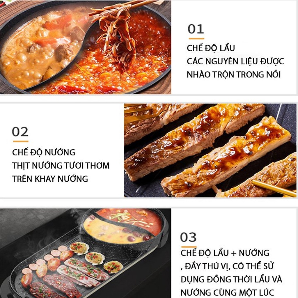 ✔️Bếp nướng có tới 2 dây nguồn riêng, giúp bạn điều chỉnh nhiệt độ nướng hoặc nhiệt độ nấu lẩu dễ dàng