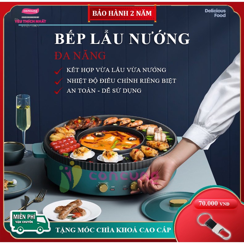 Bếp lẩu nướng đa năng bề mặt chống dính hiệu quả an toàn, Bếp lẩu nướng 2 in 1 phù hợp với nhiều người ăn Bảo hành 2 năm
