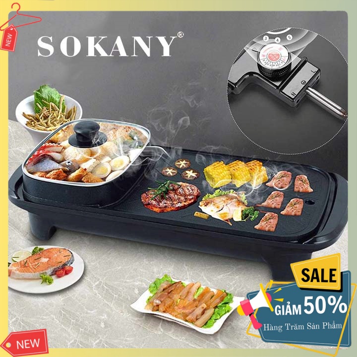 Bếp lẩu nướng đa năng cao cấp Sokany 2in1 - vừa lẩu vừa nướng siêu tiện lợi