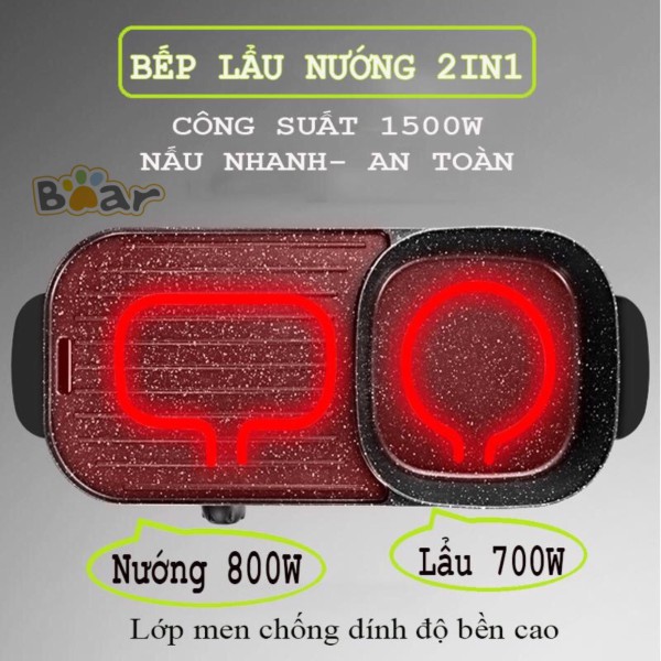 - Thiết kế 2 in 1: Bếp là sự kết hợp 2 in 1, nướng kết hợp lẩu giúp chúng ta vừa có thể thưởng thức món nướng vừa thưởng thức món lẫu, vô cùng hấp dẫn
