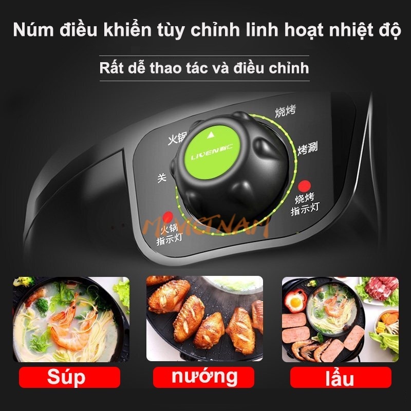 Núm điều khiển tùy chỉnh linh hoạt nhiệt độ, thay đổi khẩu vị lẩu, nướng hay vừa lẩu vừa nướng, đáp ứng đầy đủ mọi nhu cầu sử dụng của người dùng. Ngoài ra, thiết núm điều chỉnh dạng xoay điều khiển vô cùng trực quan, rất dễ thao tác và điều chỉnh.