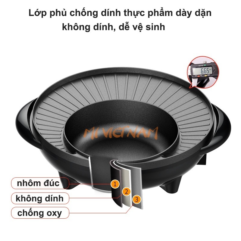 Kết cấu nồi lẩu, vỉ nướng đa năng