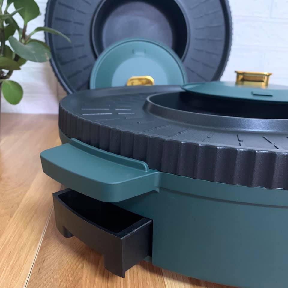 Nồi lẩu nướng đa năng, bếp lẩu nướng đa năng 2 trong 1 Nineshield là loại bếp lẩu nướng thế hệ mới nhất với kích thước lớn phù hợp cho cả gia đình. Với đường kính đến 51cm trong đó khay lẩu là 21cm, đường kính khay nướng là 42cm. Nồi lẩu và Mâm nướng có thiết kế đặc biệt và được tráng một lớp chống dính siêu bền, chống mài mòn, không làm dính thức ăn và an toàn đối cho người sử dụng. Với màu sắc sang trọng là xanh và trắng, chắc chắn sẽ làm bạn hài lòng cả về chất lượng cũng như ngoại hình.