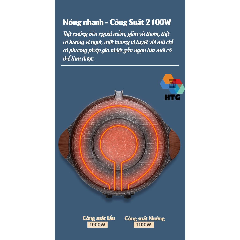 Bếp lẩu nướng tròn Suncojia LZW-1903 bằng đá y học chống dính, nóng nhanh 2100W, nút điều khiển tích hợp an toàn