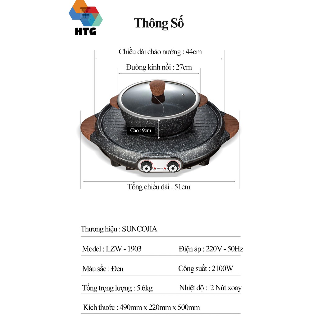 🔥Bếp lẩu nướng tròn Suncojia LZW-1903