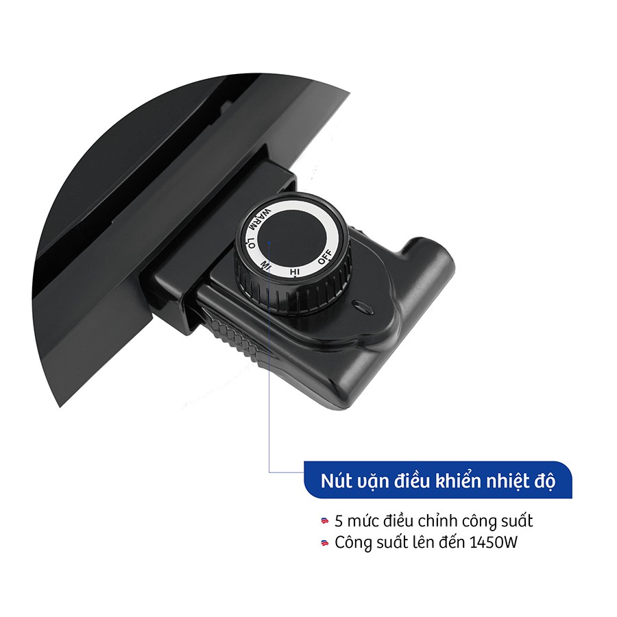 Sản phẩm được hoạt động với công suất mạnh mẽ từ 1180 - 1450W nhanh chóng làm nóng mặt bếp. Kết hợp với nút điều chỉnh công suất và nhiệt độ cho phép bạn điều chỉnh tăng hoặc giảm, giúp thức ăn chín đều, chín nhanh mà không phải chờ đợi quá lâu như khi nướng bếp than thông thường.