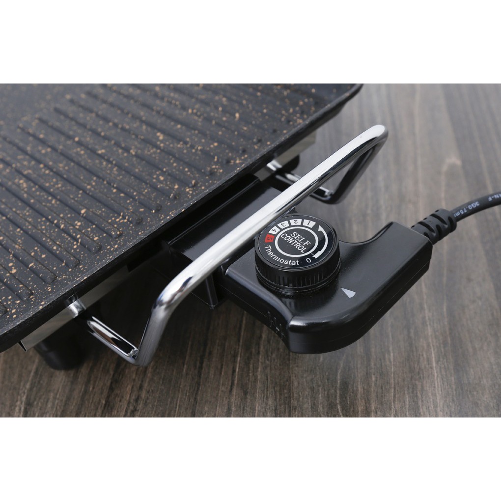 4 chân đế thiết kế cứng cáp, vững chắc, giữ cho bếp đứng ổn định trên mọi mặt phẳng. 2 bên hông bếp nướng điện có trang bị tay cầm cho phép bạn di chuyển bếp đến mọi địa điểm thuận tiện.
