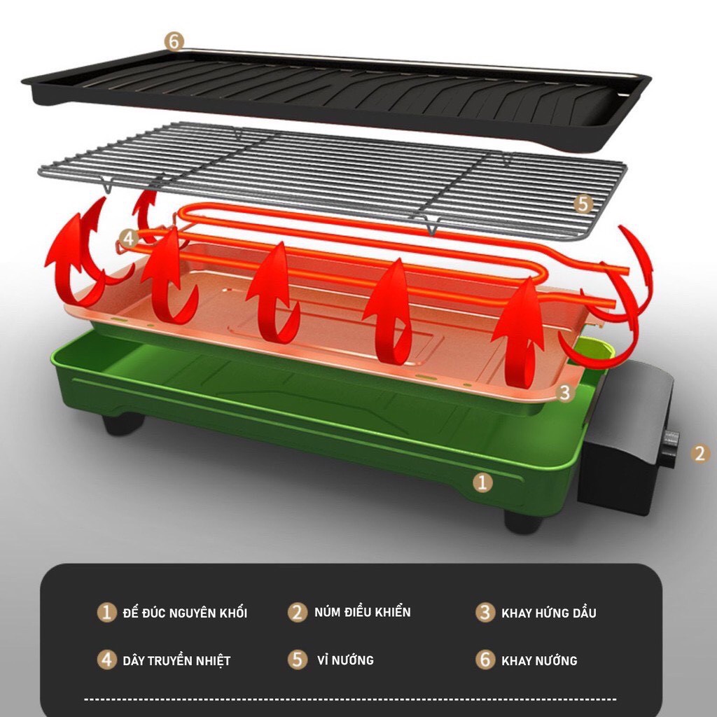 🍲Cấu tạo khá đơn giản bao gồm: Vỉ nướng, cụm điện trở, khay nướng, 4 miếng chân bếp. Do đó, bạn hoàn toàn dễ dàng tháo lắp, vệ sinh sản phẩm. Ưu điểm mặt vỉ nướng chống dính chất lượng cao, có rãnh giúp giảm bớt lượng dầu mỡ thừa, những chiếc bếp nướng này cho bạn những món nướng không chỉ thơm ngon sạch sẽ mà còn không gây hại cho sức khỏe.