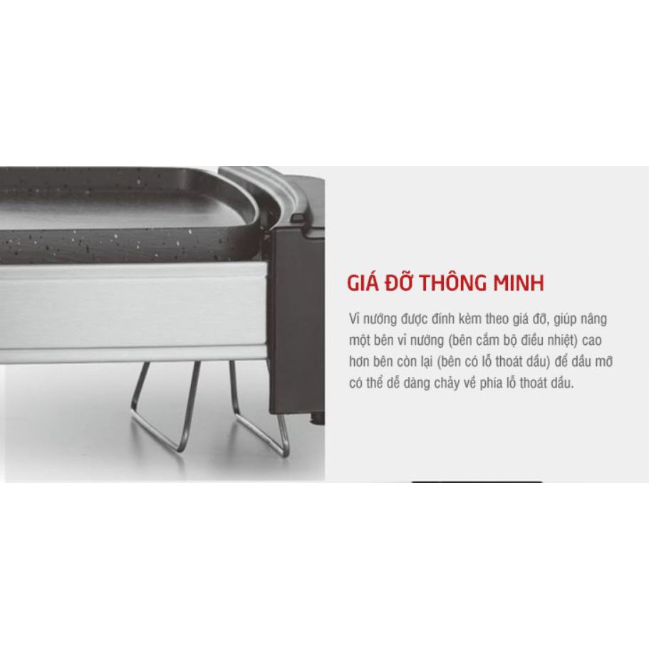 Bề mặt Bếp nướng có lỗ thoát dầu và bên dưới Bếp có ngăn hứng dầu, giúp dễ dàng loại bỏ dầu mỡ thừa khi đang nướng. Đồng thời, vỉ nướng được đính kèm theo giá đỡ, giúp nâng một bên Bếp nướng (bên cắm bộ điều nhiệt) cao hơn bên còn lại (bên có lỗ thoát dầu) để dầu mỡ có thể dễ dàng chảy về phía lỗ thoát dầu, vừa mang lại món ăn ngon, vừa đảm bảo an toàn sức khỏe cho bạn và những người thân trong gia đình.