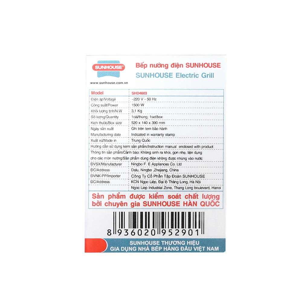 [Mã ELHADEV giảm 4% đơn 300K] Bếp nướng điện Sunhouse SHD4603 1500 W