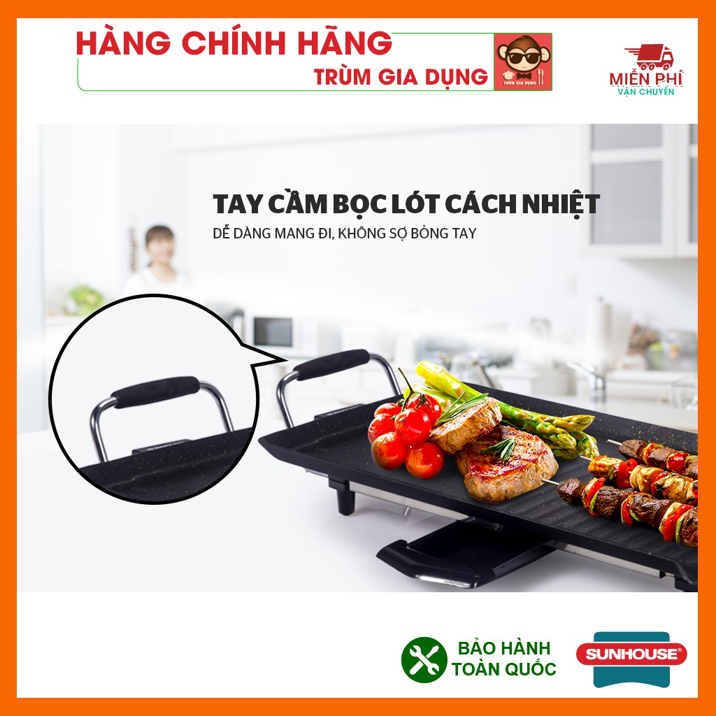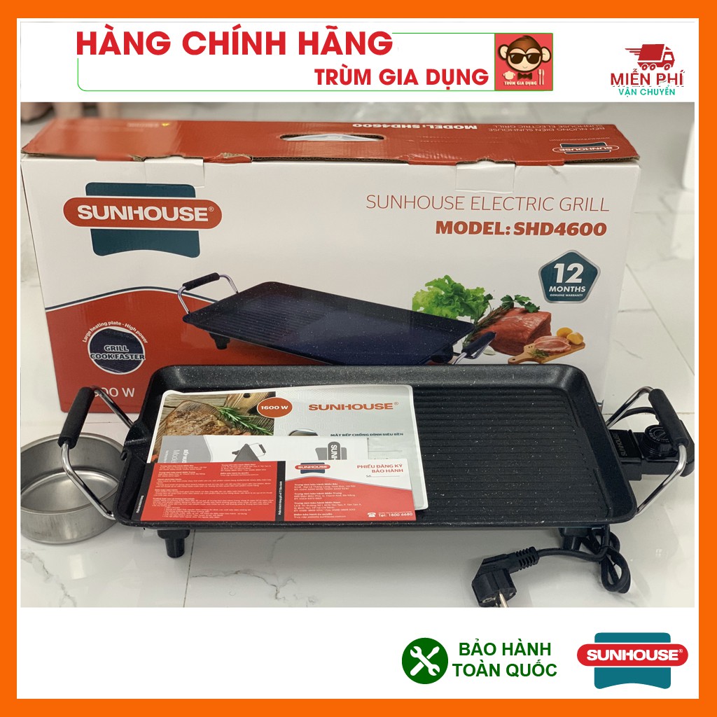 - Bếp nướng điện SUNHOUSE SHD4600 là sản phẩm bếp nướng hiện đại, tiện dụng sử dụng điện năng để nấu thực phẩm, bề mặt bếp được phủ lớp chống dính đá hoa cương truyền nhiệt nhanh hơn, giữ nhiệt lâu hơn. Bếp nhiều chức năng như: nướng, chiên, xào, rán bạn có thể thảo sức để sáng tạo món ăn. Hoạt động với công suất 1600W nướng thực phẩm nhanh hơn, thiết kế hình chữ nhật có thể nấu được nhiều thức ăn hơn.