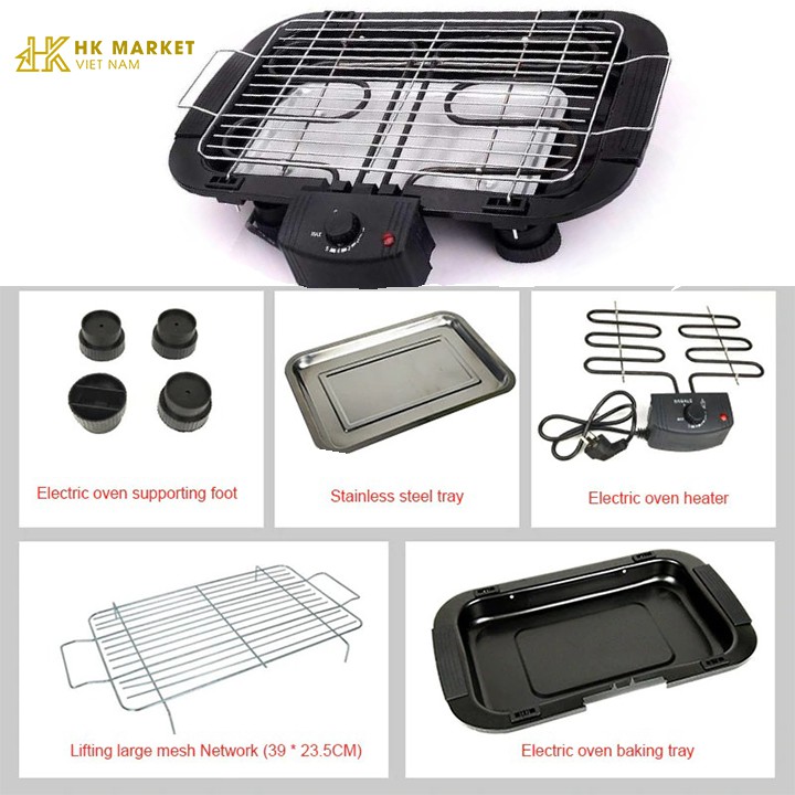 » Gồm 3 bộ phận: vỉ nướng, cụm điện trở và khay nướng.