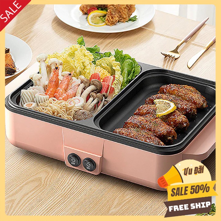 Nồi lẩu nướng điện mini 2 ngăn Chống Dính Đa Chức Năng mẫu mới nhất hiện nay