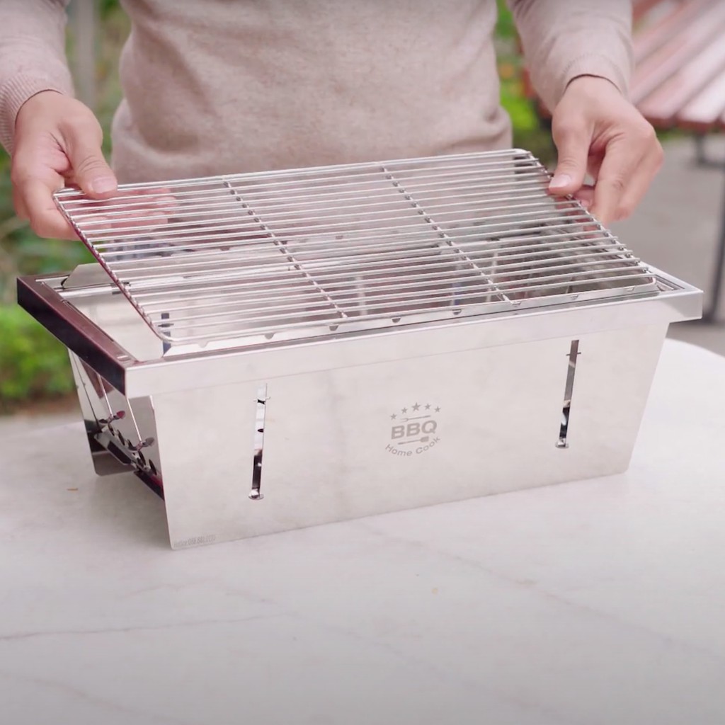 Bếp nướng than hoa Mini BBQ Home Cook gấp gọn (2 kiểu nướng) - BBQ-HC