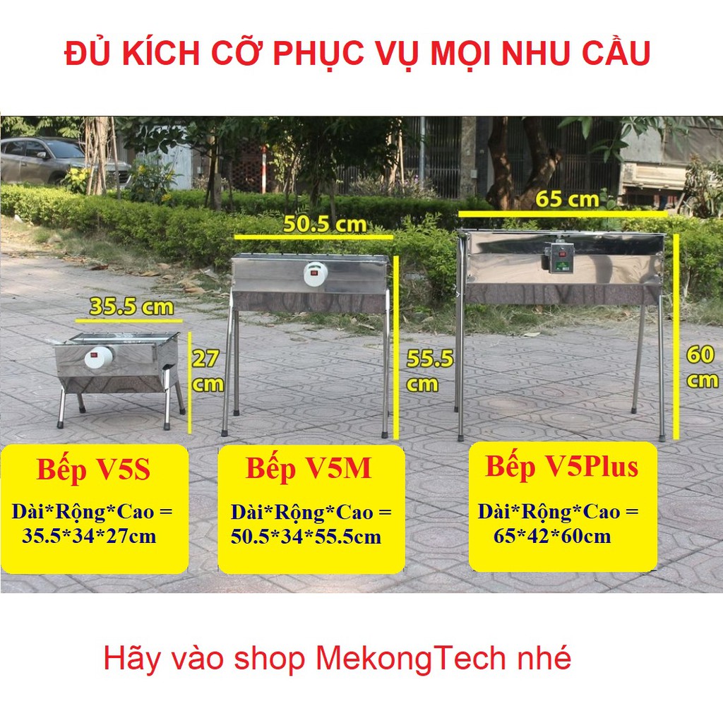 - Bếp nướng TỰ XOAY Mekong.tech V3 sử dụng nguồn điện 5 vôn từ sạc dự phòng hoặc sạc điện thoại thông thường nên tuyệt đối an toàn, không lo bị điện giật.
